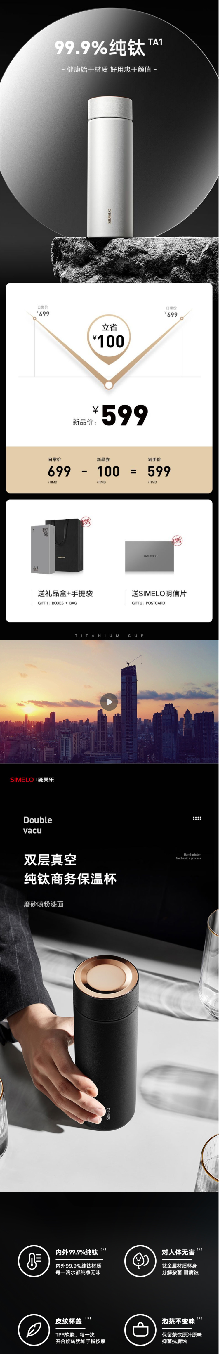 首頁 > 全部禮品 > 水具禮品 > 辦公杯 > 德國simelo純鈦保溫杯男士高顏值大容量水杯男精致高級商務(wù)杯子